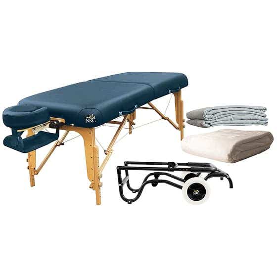The most popular brands of massage tables are Master Massage Equipment, Earthlite, NRG, and Oakworks. All four brands offer exceptional portable massage table packages. But Master Massage tends to be the most popular because of its number one rated 31” Santana™ Portable Massage Table Package. It features a table with a 3” cushion of Multi-Layer Small Cell Foam™ and a thick layer of memory foam. It also has an Ergonomic Dream™ Adjustable Face Cradle. The top 10 rated Earthlite LUNA Portable Massage Table Package makes this brand almost equally popular as Master Massage. Along with providing exceptional lightweight massage tables, Earthlite is one of the leading portable massage table optional equipment brands.