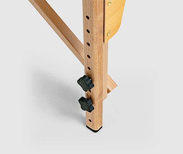 A massage table like the EarthLite® Spirit™ 35” is height adjustable between 23” and 34”. Whether you prefer a portable massage table or a folding massage table, you should buy one capable of adjusting adjacent to your hip joint. This position is a safe height to give a massage without putting unnecessary strain on your body.
