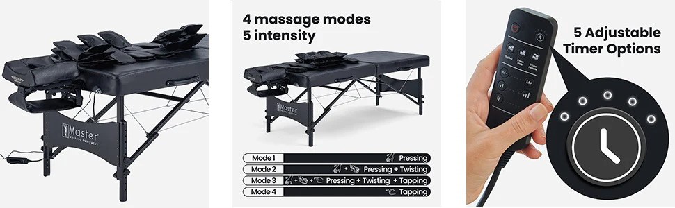 • AirWave massage table is designed with 4 massage modes and 5 level of massage intensity to meet a wide range of customer needs.